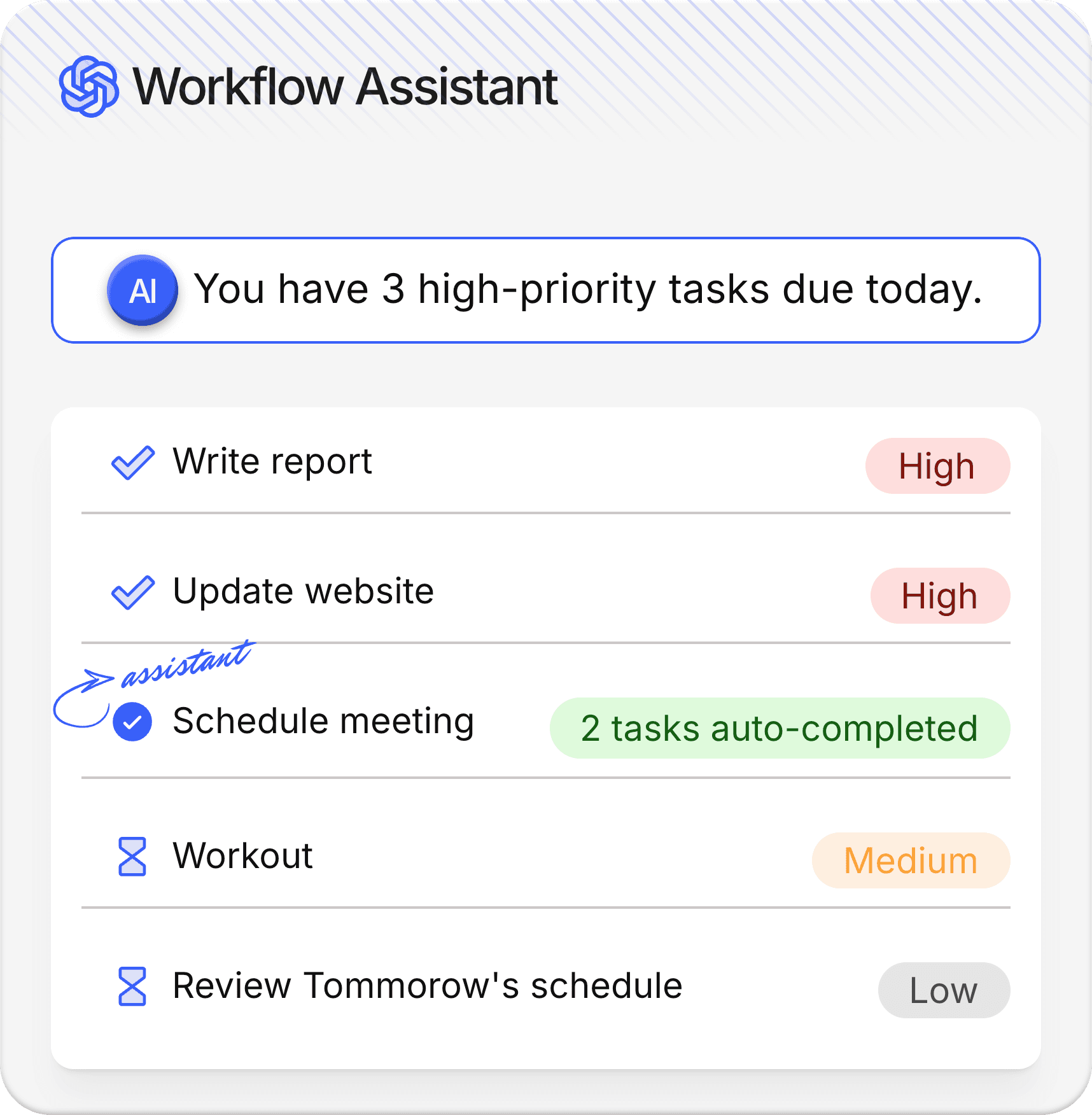 Assign tasks, set deadlines, and let the AI Workflow Assistant handle the repetitive stuff.