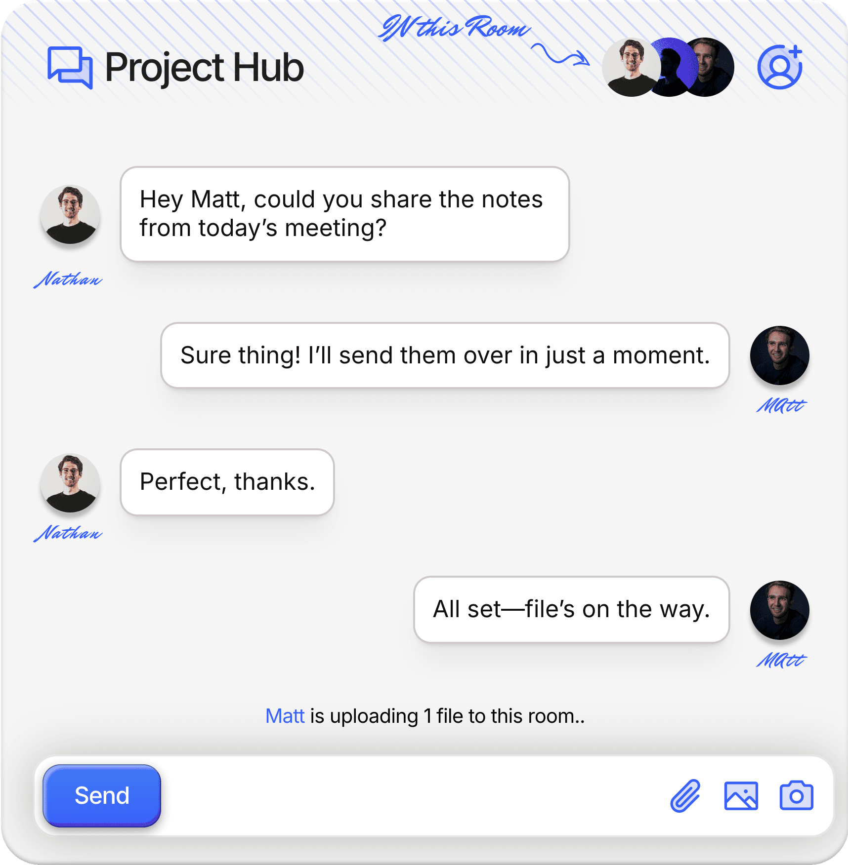 Live editing, built-in chat, and shared boards keep everyone aligned in real time. No more hunting for the latest file or chasing status updates.
